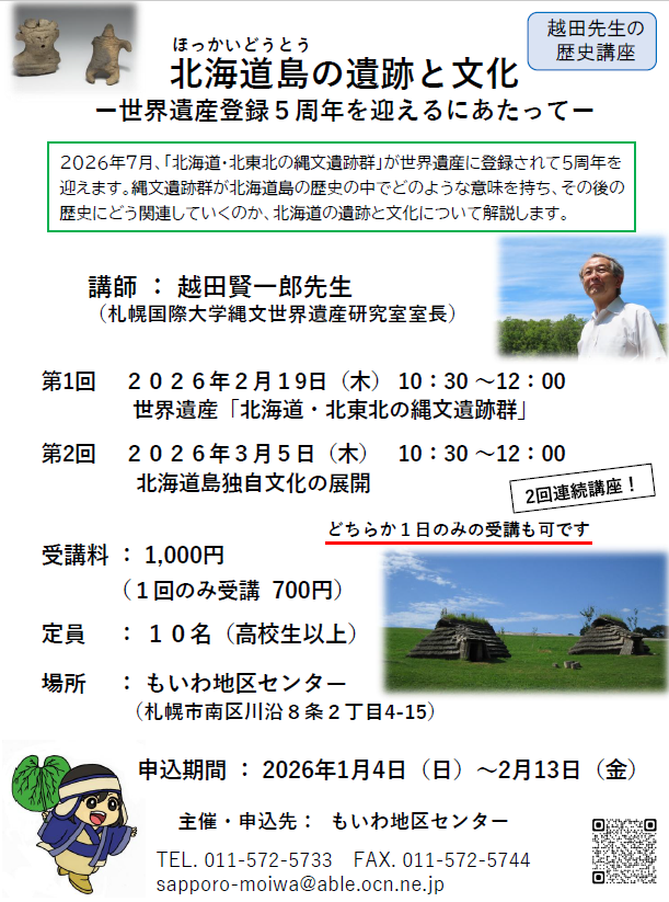 ≪2月19日・3月5日≫北海道島の遺跡と文化ー世界遺産登録5周年を迎えるにあたってー【全2回】